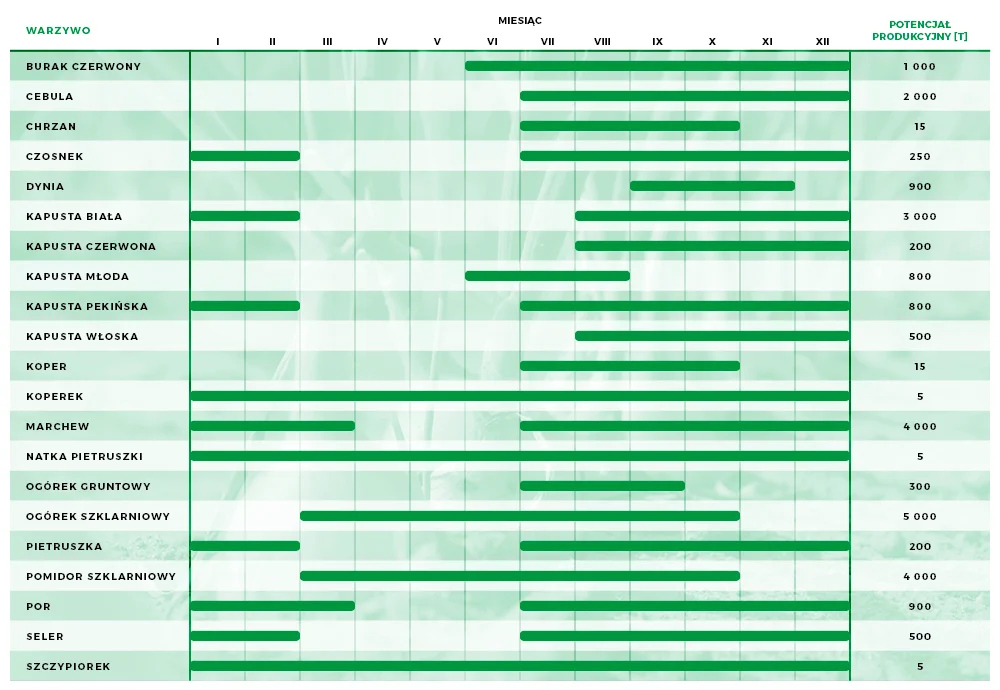 Produkujemy i dystrybuujemy warzywa korzeniowe, kapustne, cebulowe, psiankowate, dyniowate oraz owoce miękkie.